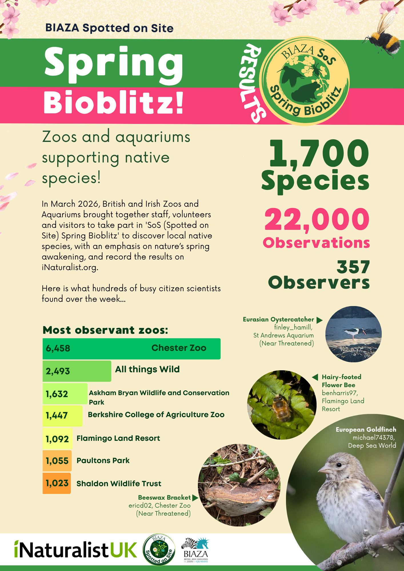 Thank you to everyone who got involved with the Spring Bioblitz! Webpage here (link to iNaturalist)